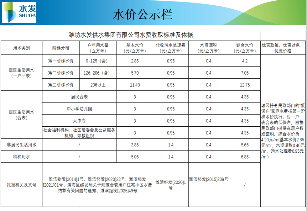 水價(jià)公示